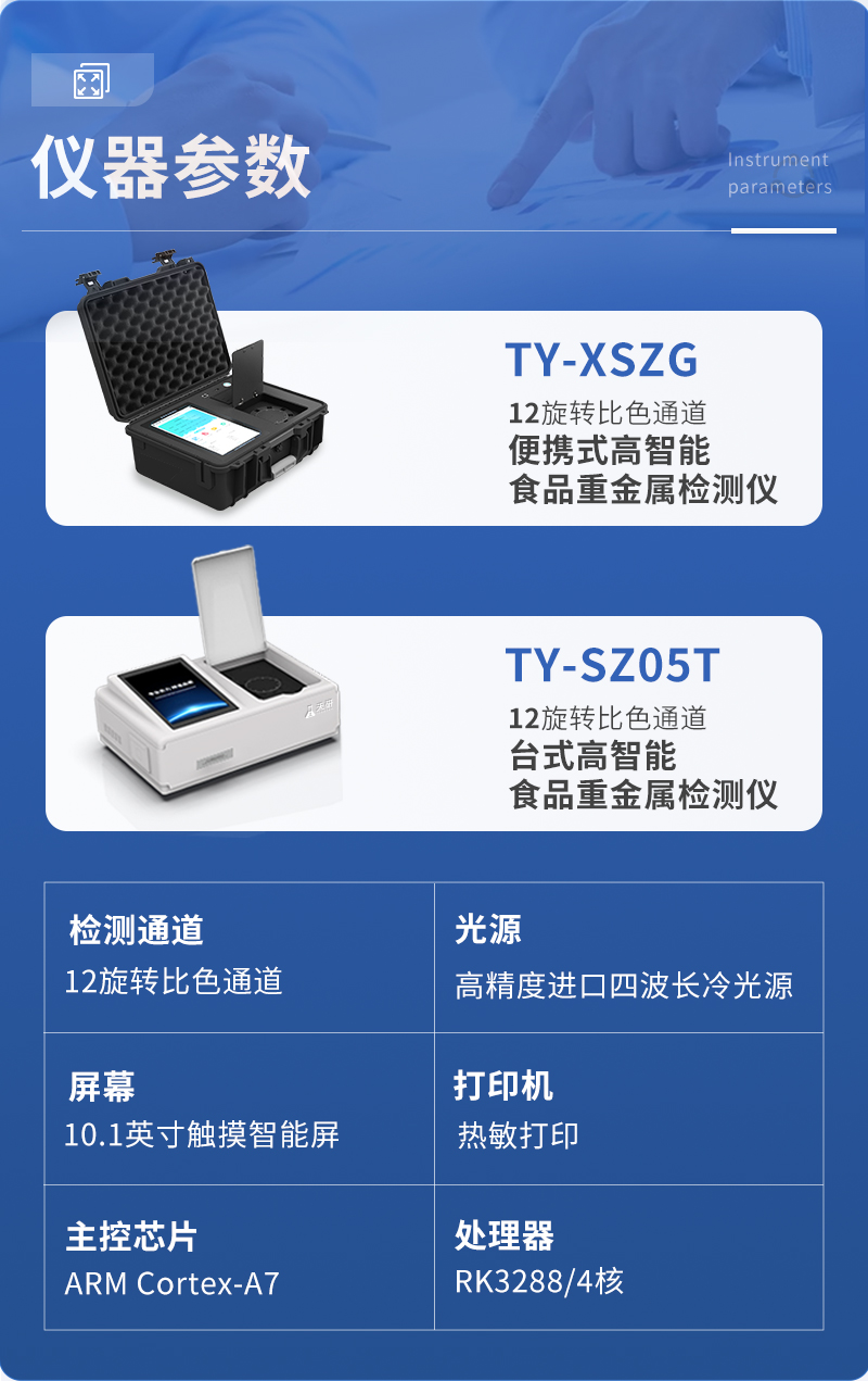 山東天研儀器有限公司生產(chǎn)的重金屬檢測(cè)儀為集成化食品安全快速檢測(cè)分析設(shè)備,采用臺(tái)式一體化設(shè)計(jì),重金屬檢測(cè)儀可廣泛應(yīng)用于大米、糧谷、果品、蔬菜、藥材、水產(chǎn)品中重金屬鉛、鎘、六價(jià)鉻、汞、砷、鐵、鎳、鋁等項(xiàng)目進(jìn)行快速定量檢測(cè),檢測(cè)項(xiàng)目可根據(jù)客戶的需求定制,儀器預(yù)留其他項(xiàng)目檢測(cè)程序和端口,根據(jù)日后需求可進(jìn)行遠(yuǎn)程升級(jí)
