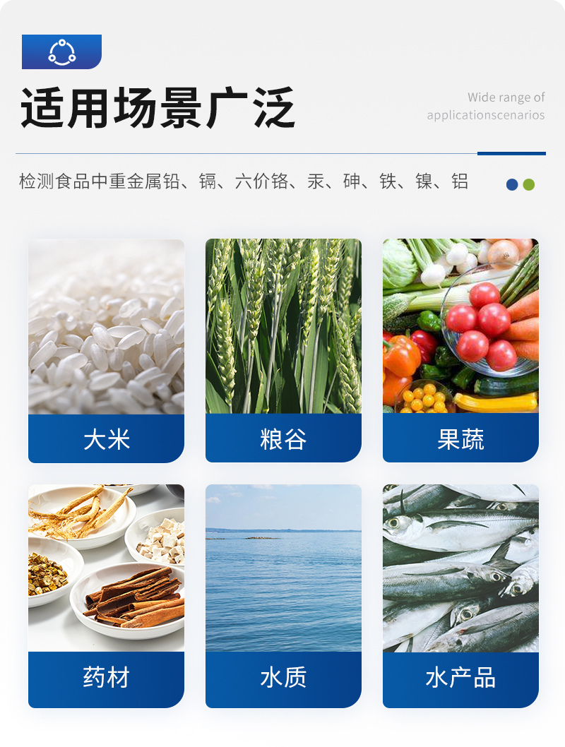 儀器用途: 山東天研儀器有限公司生產(chǎn)的食品重金屬檢測儀為集成化食品安全快速檢測分析設(shè)備,采用手提箱一體化設(shè)計(jì),重金屬檢測儀可廣泛應(yīng)用于大米、糧谷、果品、蔬菜、藥材、水產(chǎn)品中重金屬鉛、鎘、六價(jià)鉻、汞、砷、鐵、鎳、鋁的快速檢測,檢測項(xiàng)目可根據(jù)日后需求可進(jìn)行遠(yuǎn)程升級。 該食品重金屬檢