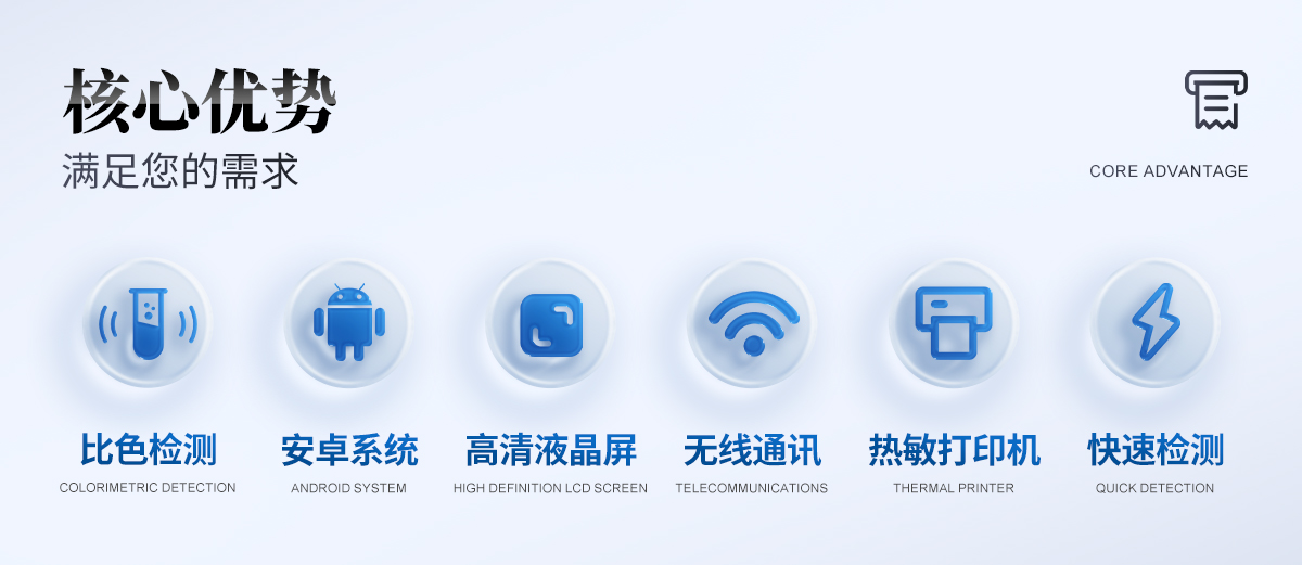 | 安卓智能系統(tǒng),操作更佳簡便快捷; | 配置監(jiān)管平臺,檢測結果可直接無線傳至平臺,進行水質長短期分析,輔助管理。 | 內置操作流程、操作簡單、無需培訓、直接上手; | 檢測速度快,現(xiàn)場讀取數(shù)據(jù) | 便攜式體積小,重量輕,方便戶外檢測 | 外形小巧美觀,工作穩(wěn)定免維護,具有較好的性價比 | 采用進口冷光源,光學性能穩(wěn)定,壽命長達10萬小時 | 交直流兩用,內置充電鋰電池,環(huán)保耐用可支持連續(xù)室內外工作。 |