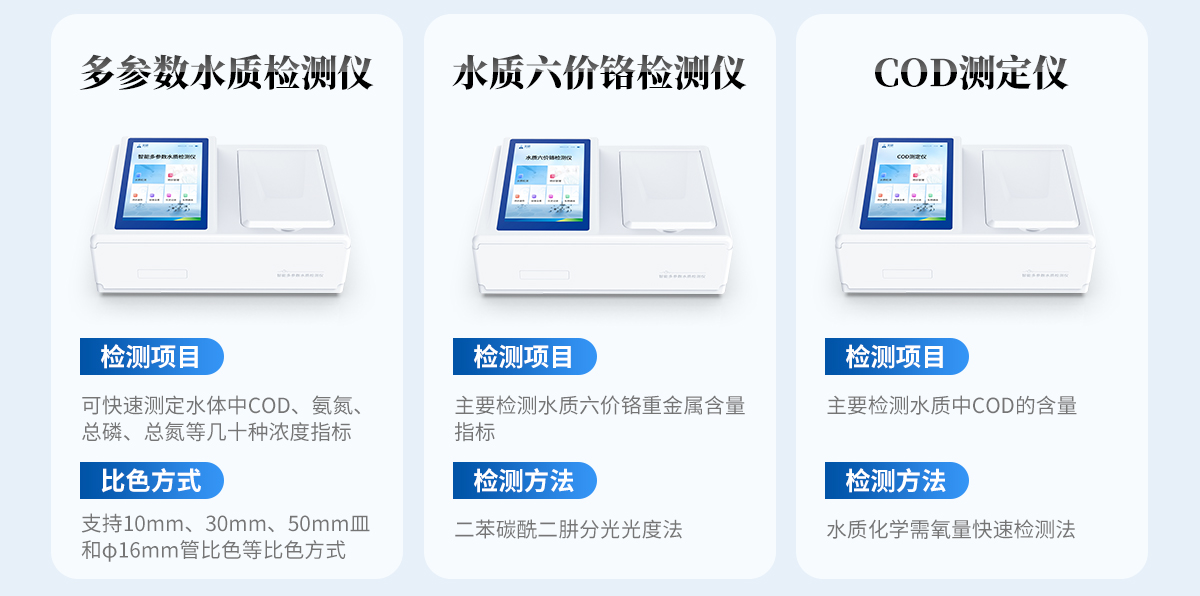提取一定量水體樣品,經過前處理后根據(jù)不同檢測項目按照試劑說明書滴入檢測試劑,檢測試劑會與水體中的待測物質發(fā)生反應,反應液呈現(xiàn)特定的顏色。