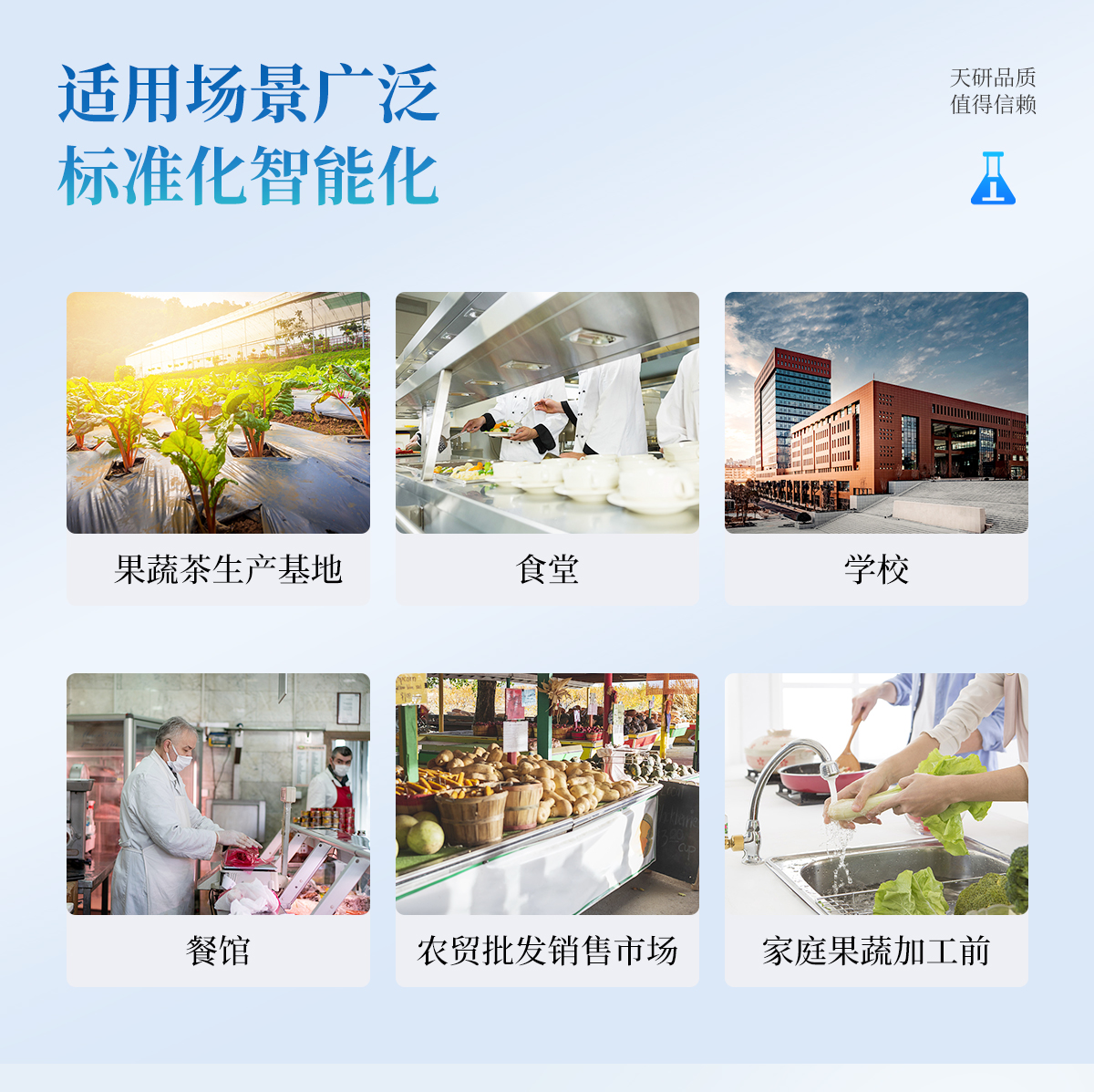廣泛應(yīng)用于主要用于蔬菜、水果、茶葉、糧食、農(nóng)副產(chǎn)品等食品中有機磷和氨基甲酸酯類農(nóng)藥殘留的快速檢測;此外還可用于果蔬茶生產(chǎn)基地和農(nóng)貿(mào)批發(fā)銷售市場現(xiàn)場檢測,餐館、學校、食堂、家庭果蔬加工前的安全速測等。