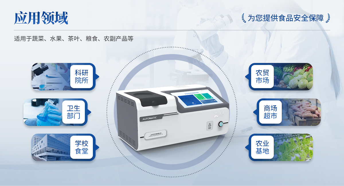 全自動農(nóng)藥殘留檢測儀是依據(jù)國家標(biāo)準(zhǔn)方法(GB/T5009.199-2003),采用酶抑制率比色法對水果、蔬菜等農(nóng)產(chǎn)品中有機(jī)磷和氨基甲酸酯類農(nóng)藥含量進(jìn)行快速準(zhǔn)確的檢測。該設(shè)備廣泛應(yīng)用于蔬菜批發(fā)市場、超市、商場、食藥監(jiān)等部門的蔬菜和水果中的農(nóng)藥殘留檢測。