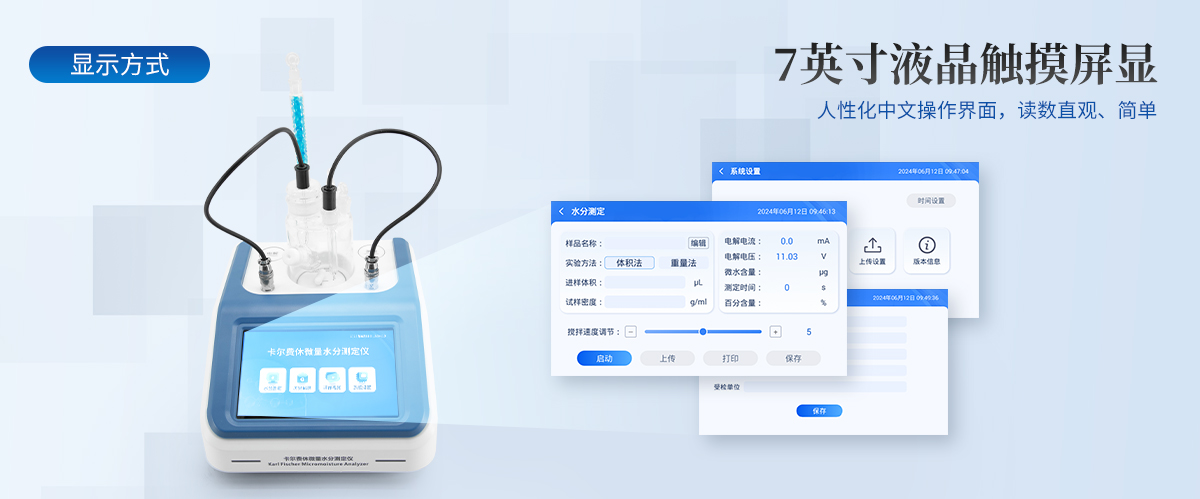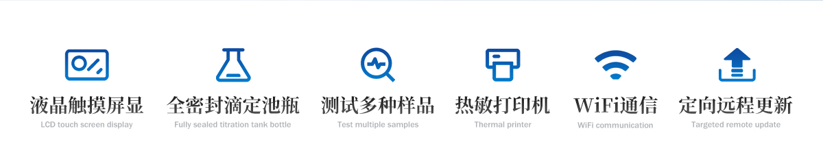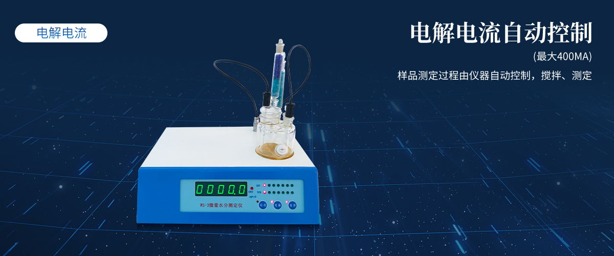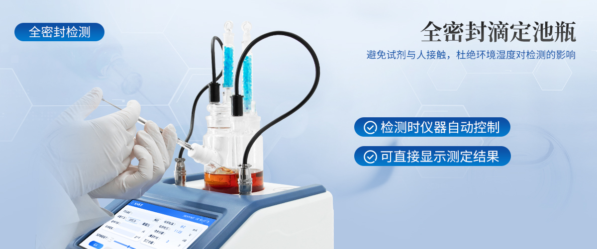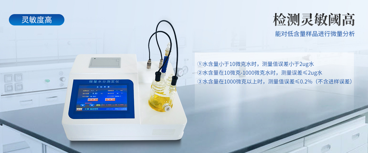 | 微量水分測定儀根據(jù)卡爾-菲休滴定原理,采用**的微機電路,測定性質(zhì)不同的液體、固體中微量水分的含量。對于不溶于試劑的固體,以及與試劑起化學反應的或容易污染電極的物質(zhì),可配用相應的固體、液體進樣器,進行間接測定。 | 該儀器具有測定精度高、分析速度快、使用范圍廣、穩(wěn)定可靠、操作簡單等優(yōu)點。廣泛用于電力、石油、化工、農(nóng)藥、醫(yī)藥等行業(yè)。樣品測定過程由儀器自動控制,攪拌、測定60秒左右自動完成,直接顯示測定結(jié)果;全密封滴定池瓶,避免試劑與人接觸,也避免環(huán)境濕度的影響; |
