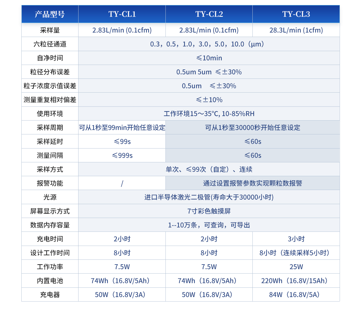 | 采樣量:2.83L/min (0.1cfm) | 六粒徑通道:0.3,0.5,1.0,3.0,5.0,10.0(μm) | 自凈時(shí)間:≤10min | 粒徑分布誤差:0.5um 5um ≤±30% | 粒子濃度示值誤差:0.5um ≤±30% | 測(cè)量重復(fù)相對(duì)偏差:≤±10% | 使用環(huán)境:工作環(huán)境15~35℃, 10-85%RH | 采樣周期:可從1秒至30000秒開始任意設(shè)定 | 采樣延時(shí):≤60s | 測(cè)量間隔:≤60s | 采樣方式:?jiǎn)未巍ⅰ?9次(自定)、連續(xù) | 報(bào)警功能:通過(guò)設(shè)置報(bào)警參數(shù)實(shí)現(xiàn)顆粒數(shù)報(bào)警 | 光源:進(jìn)口半導(dǎo)體激光二極管(壽命大于30000小時(shí)) | 屏幕顯示方式:7寸彩色觸摸屏 | 數(shù)據(jù)內(nèi)存容量:1--10萬(wàn)條,可查詢,可導(dǎo)出。 | 充電時(shí)間:3小時(shí) | 設(shè)計(jì)工作時(shí)間:8小時(shí) | 工作功率:25W | 內(nèi)置電池:220Wh(16.8V/15Ah) | 充電器:84W(16.8V/5A) |