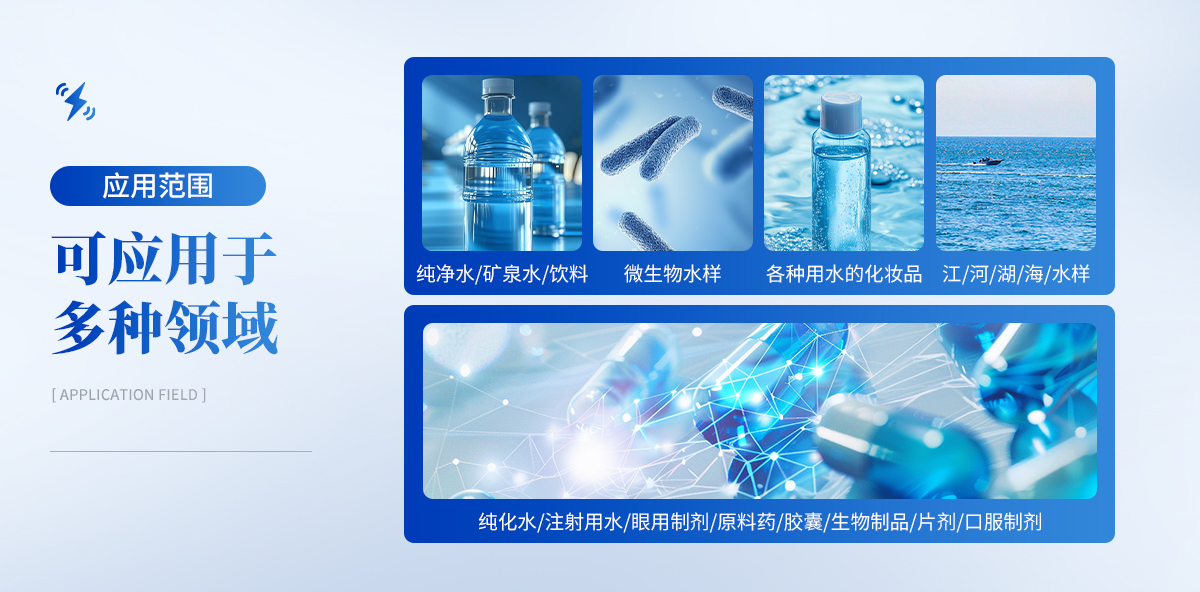 | 1.制藥:純化水、注射用水、眼用制劑、原料藥、膠囊、生物制品、片劑、口服制劑。 | 2.食品:純凈水、礦泉水、飲料。 | 3.化工:各種需測(cè)試微生物水樣。 | 4.化妝品:各種用水及產(chǎn)品。 | 5.控疾:江、河、湖、海、水樣。 |