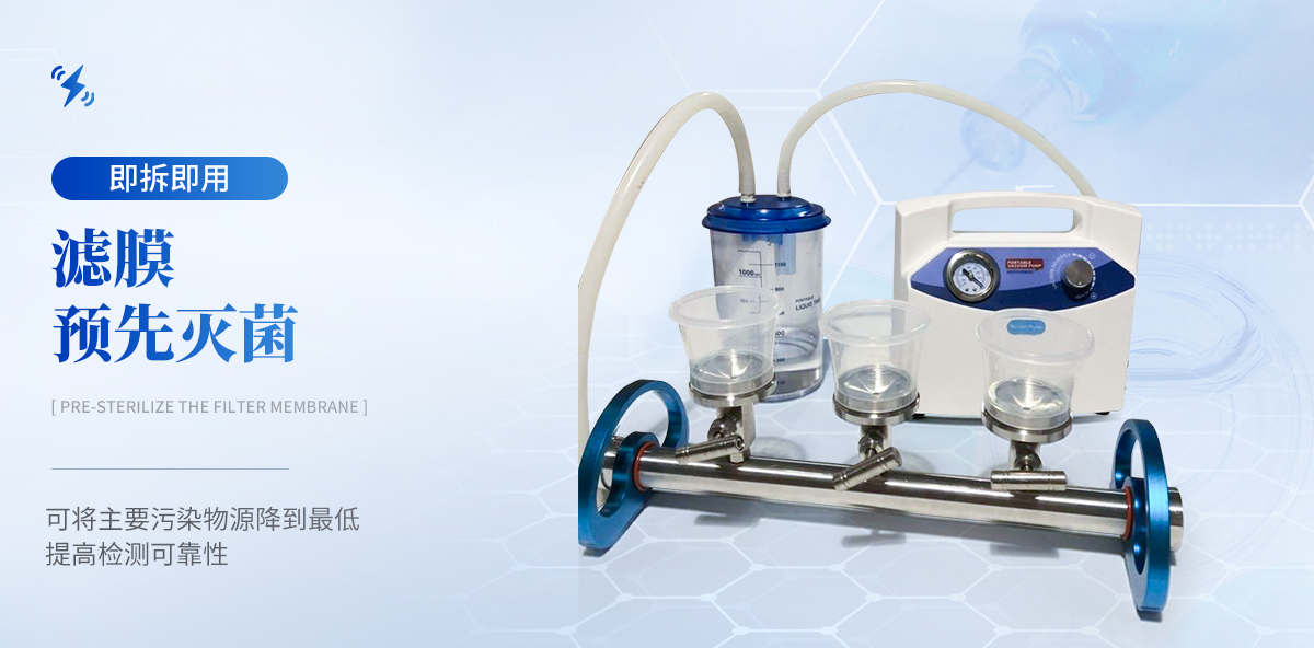 微生物限度檢測(cè)系統(tǒng)采用不銹鋼金屬材料制成,配有真空泵,外接抽濾瓶