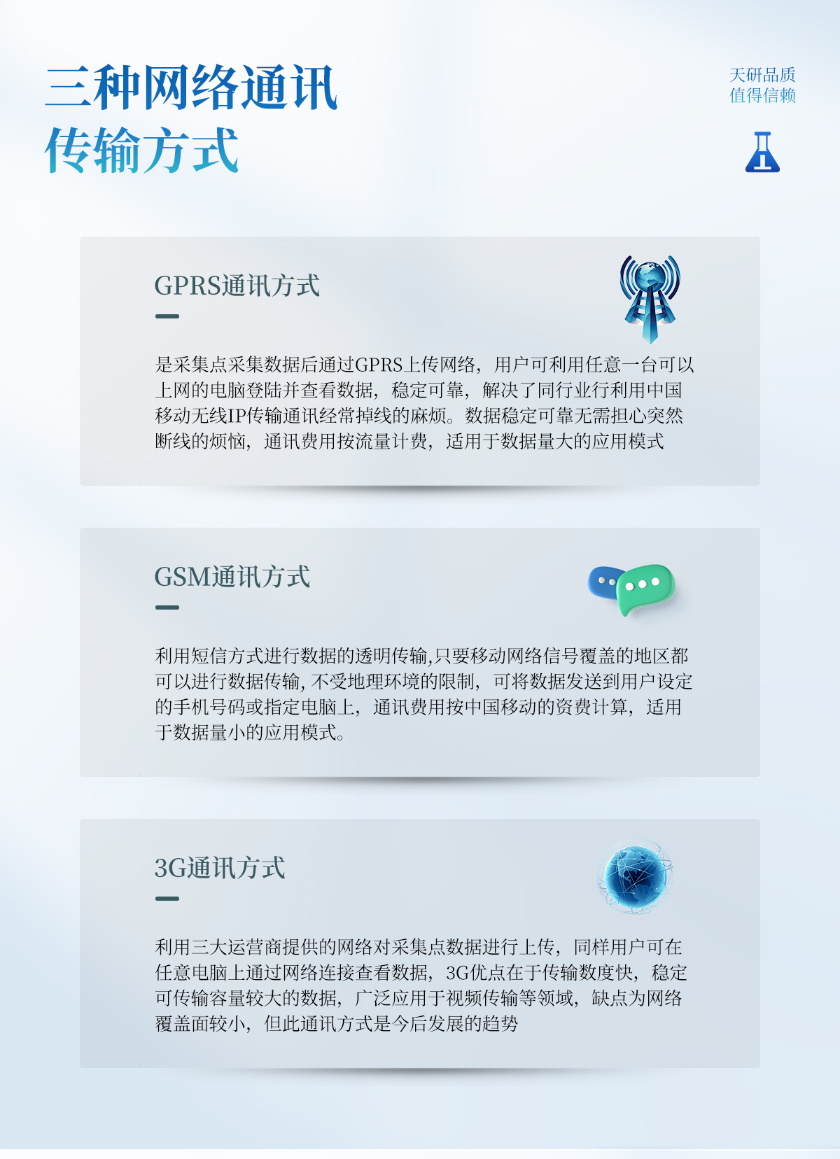 | 主控制器技術(shù)參數(shù) 數(shù)據(jù)存儲(chǔ)空間:≥100000條 記錄間隔:1分-24小時(shí)可調(diào) 數(shù)據(jù)傳輸:無(wú)線傳輸 工作環(huán)境:-30℃~80℃ 供電方式:220v市電、太陽(yáng)能供電系統(tǒng)同時(shí)使用 | 傳感器技術(shù)參數(shù) 空氣濕度:0~100% 精度:±3% 分辨率:0.1% 光照 :-20~80℃ 精度:±2% 雨量 :-20~80℃ 承雨口徑:φ200mm 精度:±2% 分辨率:0.2mm 土壤水分:測(cè)量精度:±3% 工作溫度范圍:-20℃~50℃ 土壤ec:測(cè)量精度:±4% 土壤EC測(cè)量范圍:0.2~12mS/cm 土壤溫度:精度:±0.2℃ 測(cè)量范圍:-40℃~120℃ |